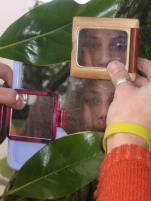 | "J'ai choisi de faire une photo à l'extérieur pour être en plein air, pour montrer la « liberté », parce que j'aime faire ce que je veux et j'aime être dehors, je m'y sens bien.Dans le miroir du milieu, en plus de mon visage, on observe une branche d'arbre et on aperçoit la « nature »...J'ai d'abord réfléchi aux miroirs que j'allais pouvoir utiliser et j'en ai choisi trois : deux petits et un moyen..." Poline G. |