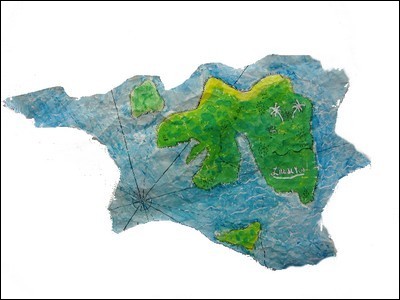 « Pour faire ma carte au trésor, j'ai d 'abord fait des formes d'îles au hasard et cela faisait un espace plat, ensuite j'ai fais les contours et les dessins et cela faisait penser au relief. Et puis j'ai donné encore plus de relief à ma carte en travaillant sur les nuances des couleur. » Mélissa, 5B
