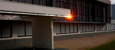 Le spectateur distingue ici et là des réflecteurs, lignes droites de métal et de verre biseauté qui s'intègrent dans certaines parties de l'architecture du collège. Des éléments pratiquement camouflés qui se révèlent au regard par des reflets, des arcs en ciel projetés un peu partout en fonction du temps extérieur et du moment de la journée.