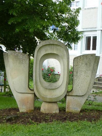 Dans un premier temps, il sera demandé aux élèves de réaliser, de mémoire, un croquis de la sculpture. Puis, d’aller la regarder de plus près, de s’en approcher, de l’observer et de la décrire en utilisant un vocabulaire spécifique (formes, jeu des masses, importance des pleins par rapport aux vides, matériau, proportions, socle, échelle, espace, environnement …) et en dépassant le simple jugement de valeur, en faisant preuve de curiosité. Enfin, leur faire réaliser un nouveau croquis et leur demander de donner un titre à la sculpture en argumentant. Comme l’a dit Marcel Duchamp « Le titre est une couleur apportée à l’oeuvre». Les faire réfléchir à la fonction du titre. Il pourrait être intéressant d’emprunter un studio de radio mobile à l’Atelier Canopé de la Sarthe pour réaliser des interviews d’élèves, de collègues, d’anciens collègues, de personnel du collège qui s’exprimeraient à propos de la sculpture. Il s'agit dès lors d’engager une réflexion sur les conditions de réception d’une œuvre d’art dans un espace public.