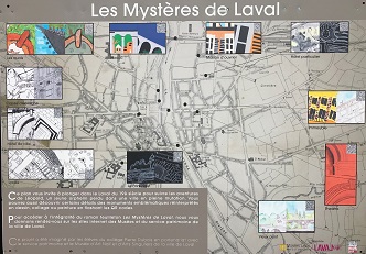 - Panneaux, grands formats, installés dans la ville (financement par la ville de Laval) dans différents lieux stratégiques ( centre ville, gare, théâtre, château, collège…) permettant aux visiteurs grâce aux QRcode d'accéder à des fiches rédigées par les élèves en Histoire/Géo, et au roman « Les Mystères de Laval », accessible avec un smartphone.