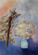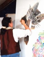 Laëtitia au travail : Le chat au bouquet - Peinture sur toile, 200 x 160 cm
