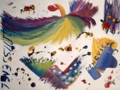 Laëtitia : Ça, je le considère comme quelque chose qui nous libère de notre toile, parce que, sur toile, c'est beaucoup plus méticuleux par rapport à ce qu'on fait ici sur le papier. Sur le papier on se dit que ce n'est pas grave, qu'on peut faire ce qu'on veut, donc, on fait ce qui nous vient par la tête. Sur la toile, on ne peut pas se dire ça. Il y a quelque chose qui doit se faire sur la toile et c'est pas autre chose tandis que sur le papier on n'a pas décidé ce qu'on allait faire. Donc, c'est venu comme ça. Tandis que sur la toile, c'est un modèle, c'est quelque chose qu'on a réfléchi...