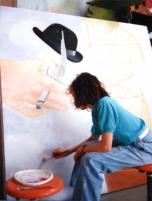 Carine au travail : La Liberté de la femme. Peinture sur toile, 180 x 180 cm