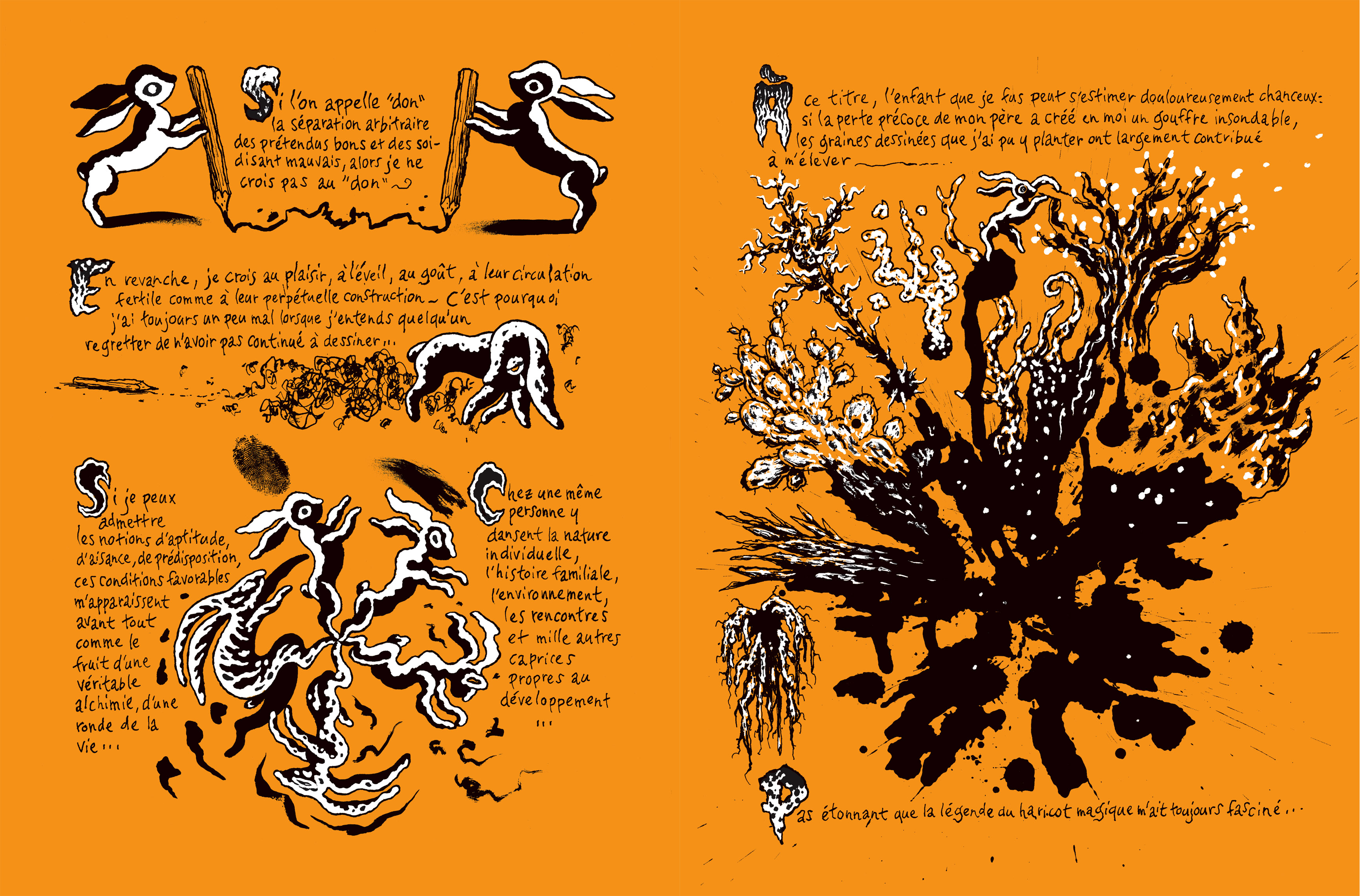 En 1991, Laure Del Pino et moi réalisons Brulos Le Zarzi , notre propre fanzine. Avec un premier numéro en format A6 photocopié à 20 exemplaires, cette entreprise modeste marque pourtant ma véritable entrée en bande dessinée. L’étape de la publication demeure un événement moteur et fondateur, qui m’a amené à concrétiser et affirmer mes travaux, puis à nourrir une exigence sans cesse reconduite. Car une fois ce cap franchi, le passage à l’acte appelle autant une suite qu’une volonté de progression. L’apprentissage de l’auto éditionpermet en outre de se confronter à tous les aspects d’une publication, jusqu’à son impression et sa diffusion. Avec mes partenaires de Brulos Le Zarzi, j’ai ainsi pu écumer les festivals, me repérer et rencontrer nos pairs. Le début des années 1990 voyait émerger plusieurs structures majeures de la bande dessinée alternative, et à partir de 1994,L’Association, Ego comme X, 6 pieds sous terre et Les Requins Marteaux ont publié mes travaux.