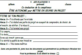 puce " De mon côté, je pense en effet que l'appropriation des enjeux de l'évaluation et de la construction des compétences de chaque élève résultent de différentes temporalités et de mise en place différenciée. Ces moments et manières variés, permettent à l'élève de prendre conscience de l'évaluation en respectant son implication, son approche et son attitude face au travail demandé (on sait très bien que certains élèves oublient en chemin les enjeux de l'évaluation, que d'autres travaillent à l'instinct et d'autres encore ont besoin de digérer la proposition avant de se lancer). "