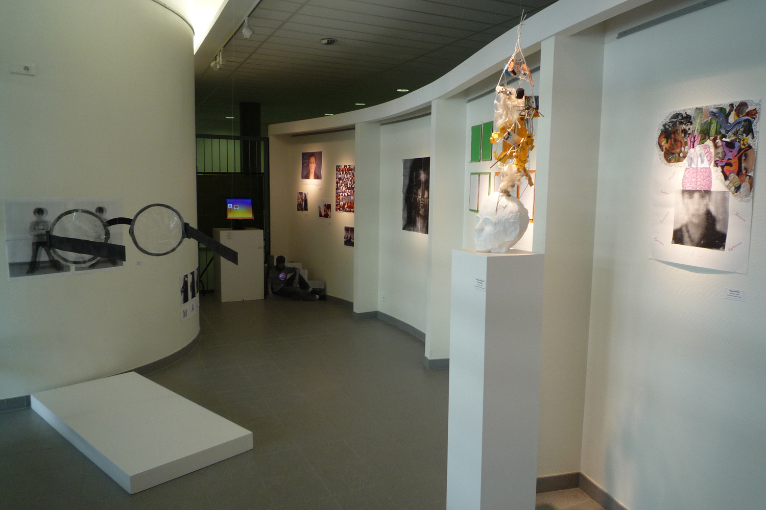 Exposer des productions d'élèves se fait depuis longtemps au collège comme au lycée dans des espaces désormais reconnus comme étant des mini-galeries. Comme l'indique le texte de référence, cet espace invite le spectateur à prendre le temps de regarder, d’explorer les différentes productions présentées. A minima, elle peut être matérialisée par un mur coloré, ou blanchi dans la salle d'arts plastiques, un décrochement dans un espace de circulation, une alcôve entre deux poteaux avec des indications pour la repèrer : un titre, une signalétique particulière, une ligne colorée le long des murs, quelques informations qui ponctuent la circulation.