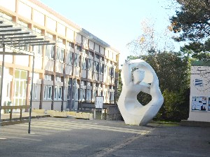L’œuvre est implantée près du bâtiment de l’administration du lycée.