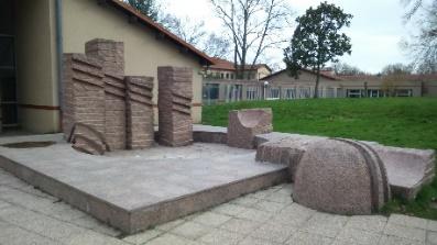 Tetsuo HARADA réalise des œuvres monumentales, souvent inscrites dans le mouvement du Land Art. Il sculpte en taille directe. L’artiste a conçu cet ensemble pour permettre aux élèves de se rassembler.