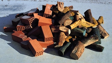 Bernard Pagès travaille des matériaux abandonnés pour réaliser ses sculptures, puis il assemble brique, bois, carrelage, pierre, gravier, tuyau... Il classe ses ensembles par Inventaires, Nomenclatures, Enumérations.