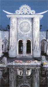 | fiche technique auteurs Robert et Lise Tatin années de construction entre 1962 et 1983 dénomination sculpture monumentale - dimensions : environ 1200 m2 descriptif une allée bordée de 19 statues, un ensemble de façades sculptées et peintes, un jardin intérieur, six salles de peintures, céramiques, dessins, écrits matériaux ciment armé - peinture acrylique statut juridique musée communal depuis 1967, musée de France depuis 2002 |