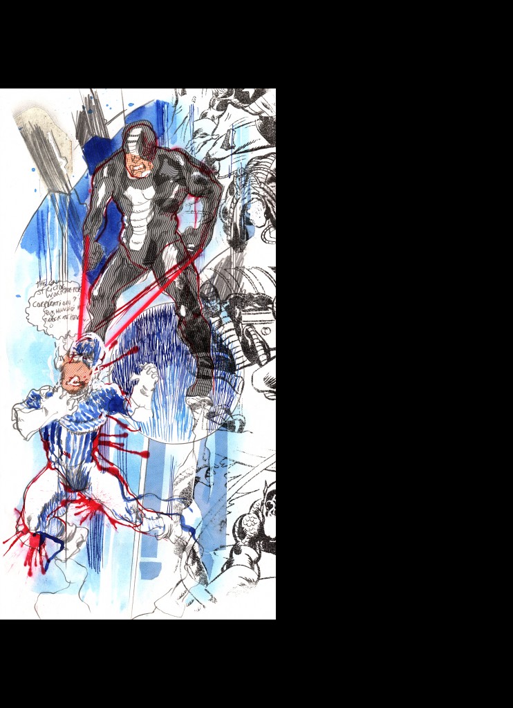 "De l’appropriation libre d'un riche inventaire de motifs et d'icônes à l’irrévérence outrancière, 28 planches ont été assemblées dans un objet hybride entre le portfolio et le livre géant. Elles présentent une large gamme d’approches plastiques chères à l’auteur, révélant nombre des aspects les plus novateurs et expérimentaux d’un des monstres sacrés de l’industrie de la bande dessinée populaire américaine."