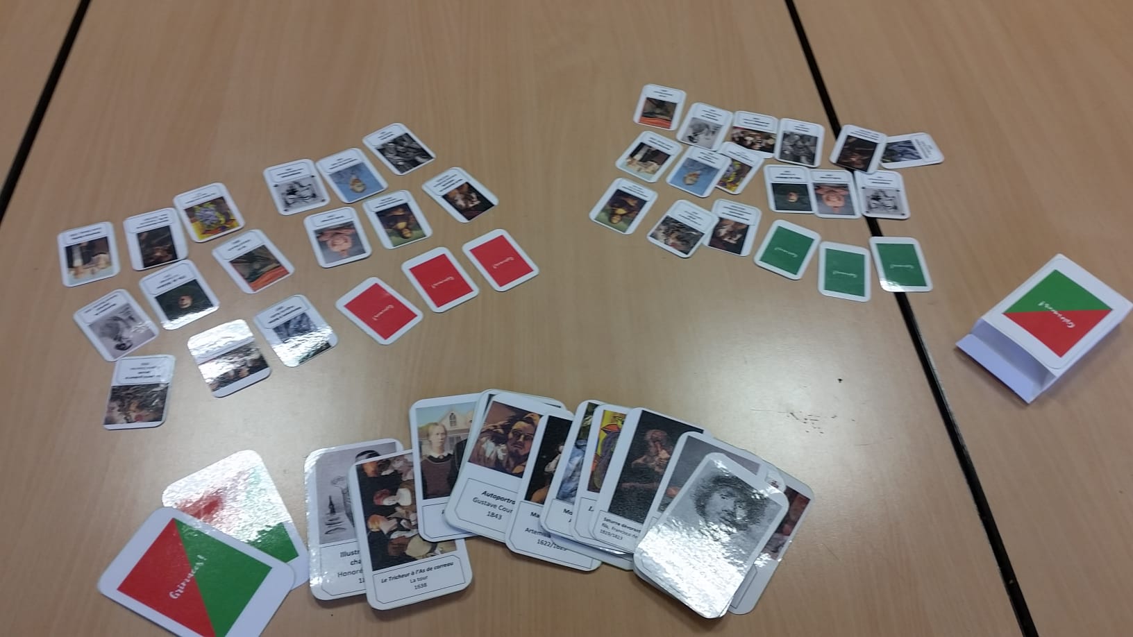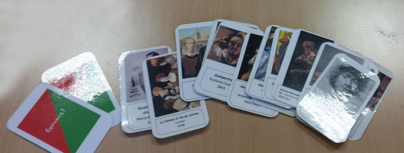 Cette proposition créée par un professeur d'arts plastiques, allie des connaissances et parfois de bonnes intuitions. Avec une règle du jeu maîtrisée en quelques minutes, ce dispositif léger permet de sensibiliser les élèves aux œuvres artistiques, de faire appel à sa mémoire visuelle en écho avec les apprentissages de la classe.