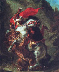 - Un Delacroix ("cavalier arabe attaqué par un lion" ou "cheval effrayé par l'orage")