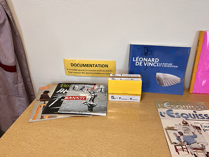 - A l’issue d’un travail, les élèves ayant terminé ont la possibilité d’utiliser les différents supports de l’espace documentaire (livres, magazines d’art et de culture, jeux éducatifs) sans l’aide de l’enseignant.