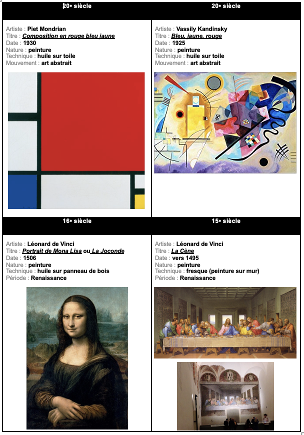 Le jeu est composé d’œuvres vues en classe, d’autres qu’ils ne connaissent pas. Les questions ouvrent le sujet sur la représentation de l’espace, avec des œuvres abstraites et figuratives.
