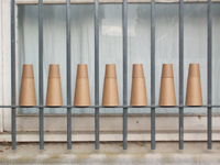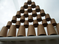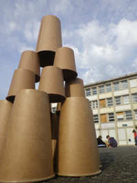 Par groupe de 3, les élèves disposent d'une trentaine d'objets identiques (des gobelets de carton) et d'un APN. Il s'agit de réunir les objets dans une intention précise (organisation) puis de prendre une photo qui « magnifie » l'installation.