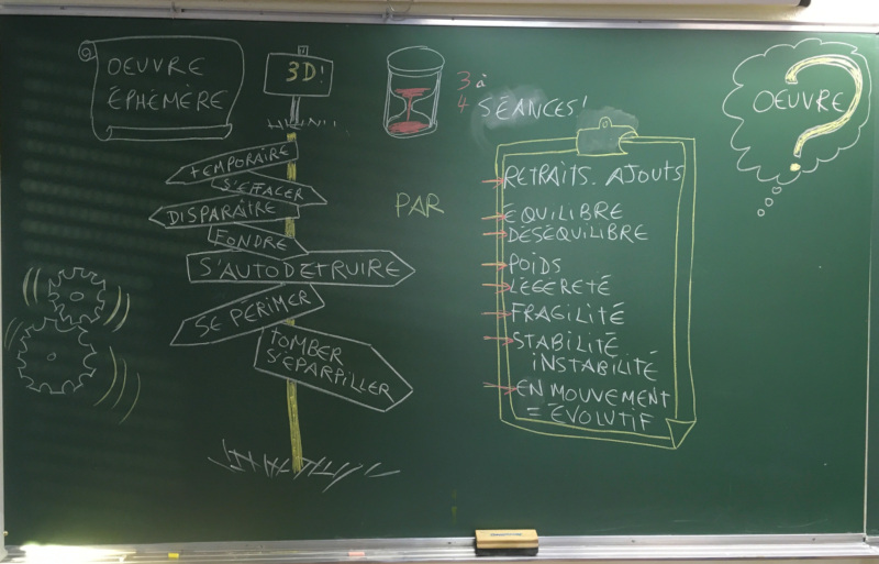 A chaque séance, et pour une présentation plus explicite des enjeux d'apprentissage, je dessine les grandes pistes de la séance à l'aide d'idéogrammes au tableau.