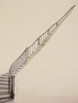Dans cette situation de cours, les élèves sont amenés à représenter un escalier tout en trouvant des stratégies graphiques laissant apparaître cette illusion d'infini supposée dans les termes "sans fin". |