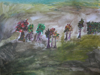 | Le vidéoprojecteur permet de projeter une image qui sert d'ancrage aux peintures des élèves. Représenter un paysage à partir d'une image s'avère plus stimulant pour les élèves |