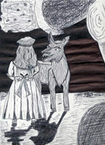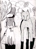 | une gravure de Gustave Doré Le petit chaperon rouge et le loup, 1862 |
