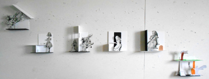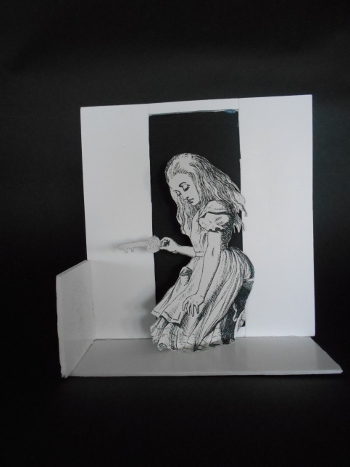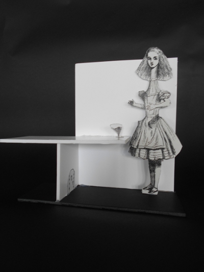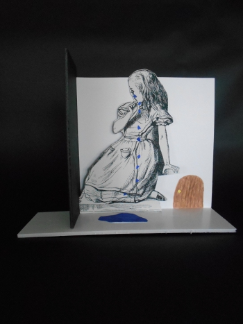A présent assez grande pour attraper la clé fétiche Forcément, la porte est devenue trop petite Plus de lapin ni jardin, la voilà seule au monde