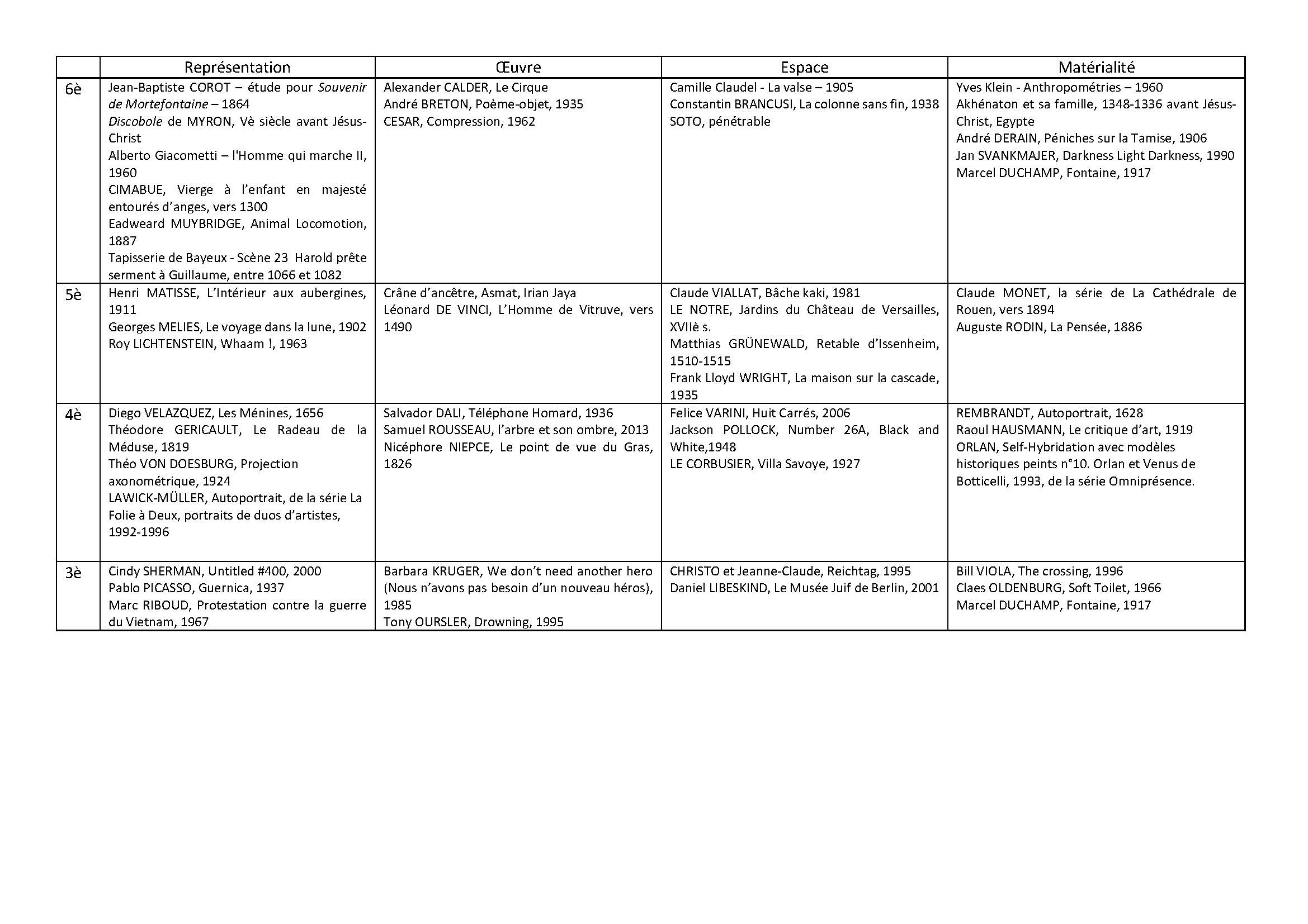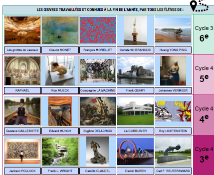Quelles sont les oeuvres d'art que les élèves connaissent déjà à leur entrée au collège ? Qu'en savent-ils ? Que vont-ils découvrir et apprendre au collège ? Que devront-ils retenir ?
