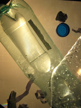 Dans cette situation de cours où il était demandé à des élèves de sixième de faire une série de photos artistiques avec des bouteilles d'eau, les effets de matière produit par la lumière les a conduit à faire de nombreux gros plans. Ils n'ont pas hésité à "couper" leur sujet, à laisser "hors champ " une partie de celui-ci. Le dispositif : APN, plastique transparent, lumière et papiers de couleur a été très incitatif et les résultats, flatteurs, pouvaient-ils prouver que les élèves étaient désormais capables de choisir leurs cadrages dans d'autres circonstances ?