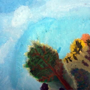" Une fois où on avait fait des photos et il y en avait qui avaient pas tout montré sur la photo, ils avaient coupé leur sujet. J'avais trouvé ça bien et j'métais dit qu'il faudrait que je fasse pareil un jour. Et là, quand j'ai regardé par la fenêtre, j'ai vu les arbres, comme tout le monde, mais j'ai vu aussi le ciel, et j'ai eu envie de montrer plus le ciel que les arbres. J'ai repensé à ces photos coupées."