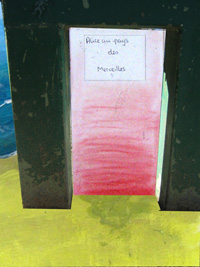 Alors qu'ils achevaient un autre travail, les élèves ont été invités à s'éclipser quelques instants à tour de rôle pour prendre des photos avec la consigne suivante : "ouvertures", sans autre précision que : "ces photos serviront plus tard". Certains préférèrent travailler seuls, d'autres par équipes de deux.