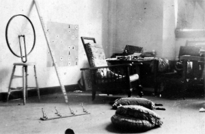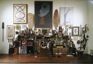 Je trouve donc des photographies d'ateliers ou lieux de vie, ou centres de productions d'artistes que je sais incontournables dans le programme d'histoire et d'histoire des arts (Picasso et Guernica, Kurt Schwitters), également intéressants pour les questions aux programmes en arts plastiques (Duchamp, Pollock, Koons) et intrigants comme témoignage (le bureau atelier de Breton reconstitué au Centre G. Pompidou). Je soumets donc aux élèves six photographies d'ateliers d'artistes dans lesquels on peut deviner comment ils travaillent. Un observateur cultivé reconnaîtrait facilement certains ateliers et certaines œuvres mais je dissimule les peintures de Picasso et de Pollock pour ne pas influencer les élèves. De fait, quelques très rares élèves de niveau socio-culturels privilégiés auront reconnu Pollock.