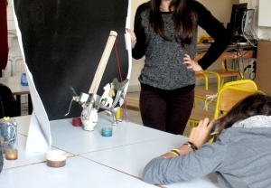 | Six photographies d'ateliers d'artistes sont données aux élèves. Les noms et les œuvres sont occultés. Les élèves les observent, les analysent, en choisissent une. "Réalisez une production artistique qui ressemble à celles qui seraient, d'après vous, produites dans ces ateliers." | |