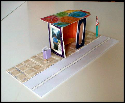 - matériaux de la maquette : carton, tapisserie, papier cadeau, plastique transparent, plastique imitant des pavés