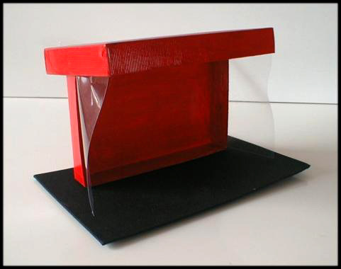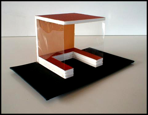 - matériaux de la maquette : carton plume, plastique transparent, carton rigide, tapisserie (rouge et jaune orangé)
