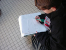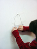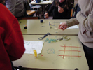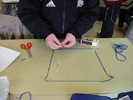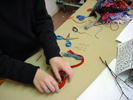 A l'aide des divers fils, morceaux de branches et allumettes qu'ils ont apportés, ils doivent « reproduire leur dessin sur un support trouvé dans la salle d'Arts Plastiques ». J'ai cependant interdit tout support amovible qu'ils pouvaient trouver : planches de bois, catalogues, autres feuilles.