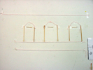 Le temps imparti étant limité, les élèves ont réduit la représentation de leur lieu aux lignes principales. Ils ont cependant réfléchi à l'épaisseur des lignes pour signaler contours ou masses. Il n'y a pas forcément eu réflexion sur l'incidence du support dans leurs jeux de lignes et parfois le choix de la couleur du fil rendait difficile la perception du dessin.