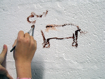 Ils ont été vigilants au fait de pouvoir effacer rapidement leurs dessins pour pouvoir laisser le support dans l'état ou ils l'avaient trouvé avant. Ce qui impliquait l'utilisation d'outils et de techniques effaçables, lavables : craies à tableau, peinture à l'eau.
