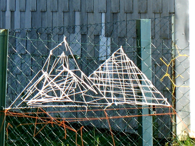 Il est à la verticale, il est fait de losanges qui ne sont pas remplis. Il a des trous.