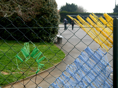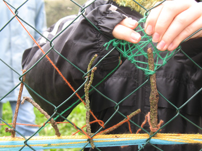 On a tendu la laine sur le grillage pour faire les contours puis on a gribouillé à l'intérieur pour emplir les dessins...