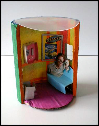 - matériaux de la maquette : carton, publicités, papier translucide, tapisserie, CD