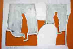 Sur chacune des 63 plaques se trouvent de 1 à 4 lignes sinueuses et continues figurant / représentant un profil ou une partie de profil. La ligne est simple,( la découpe est nette ) et continue , comme dépouillée, ce qui fait penser à certains dessins de Matisse ,Picasso ,Cocteau. L'artiste va à l'essentiel, la ligne agit comme un signe.