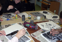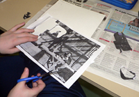 - Non ! On a fait ressortir le dessin avec la peinture car on devait faire disparaître ce qui était en trop. Moi j'ai mis du noir dessus.