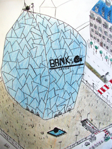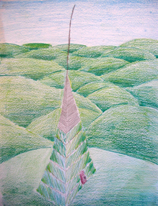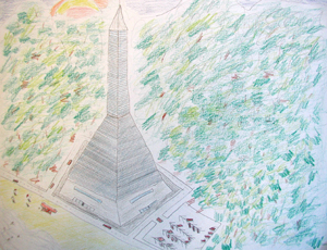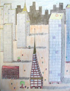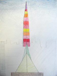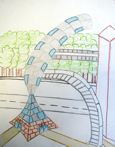 Les élèves ont été invités individuellement, dans un deuxième temps, à imaginer par dessin que cette construction était une architecture et à en déterminer la fonction, les matériaux de couverture, la situation... Les photos en négatif (économie d'encre) des projets pris sur fond noir leur étaient données.