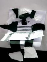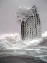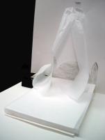 J'ai utilisé du papier machine, du papier canson et du papier de soie , pour faire des boules cela se chiffonne mieux. Pour parler de mon travail, je peux utiliser les mots : équilibre, solidité, matière, forme."