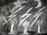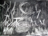 - Comment les formes ont été faites : par des lignes, des surfaces tracées à la gomme. « vidées » du fusain
