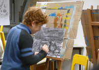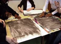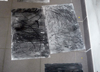 Pour la première étape (le recouvrement du support au fusain, il ne s'agit pas d'un travail de questionnement du dessin car cette action pose plus des questions de gestes, matière, graphisme / sens et donc de recouvrement)