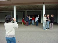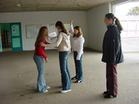 Tous les décalages et écarts ont été mis à jour et ont permis d'aborder les notions de cadrage, de point de vue, et de choix de focale. Les élèves chargés de la prise de vue ont fait part à leurs camarades de la difficulté qu'ils avaient eu à "se placer", à trouver le "bon" cadrage et en disant "c'est pas pareil quand on regarde dans l'appareil" ils ont permis de faire apparaître que la prise de vue correspond à une vison monoculaire, celle de l'objectif, et de faire ainsi le parallèle avec la perspective conique qui utilise le même principe (question déjà abordée lors de l'exercice précédent ).