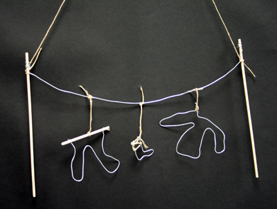 Ben, suivant ce que l'on voulait faire! Pour les contours, on a pris des brindilles parce qu'elles se voient mieux que le fil de fer. Le fil de fer était pratique pour ce qui ne se voit pas!
