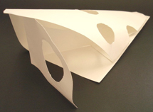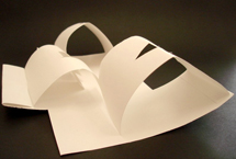 En fin de cours, je leur propose avec une feuille A4 et une paire de ciseaux de construire avec les mêmes contraintes en s'éloignant le plus possible du parallélépipède. En 15 minutes, les élèves réalisent des architectures ouvertes, penchées, éclatées, courbes.