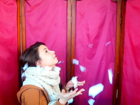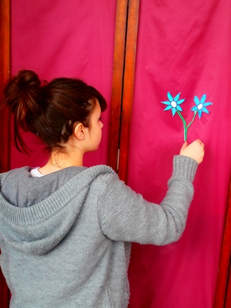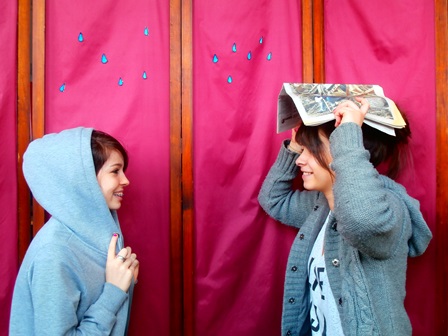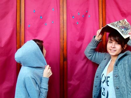 Les élèves empruntent un paravent, ils souhaitent l'utiliser comme fond. Trouvant peu d'intérêt à leurs premières images, ils décident de les imaginer avant de les réaliser. L'échange oral entre eux devient alors essentiel. Les élèves ne s'appuient plus sur les images obtenues par hasard en expérimentant , ils décident auparavant des images à prendre en élaborant un projet . Ils utiliseront leurs expériences antérieures et sauront choisir leurs cadrages et étudier leurs mises en scène, ils ne procèderont plus par essais/erreurs. . Pour chaque image, ils dessineront un élément : gouttes de pluie, cœur, .... Les accessoires seront choisis avec soin, plutôt qu'un parapluie, ils demanderont un journal. "Nous avons fait des photos "porteuses de sentiments". Nous avons travaillé avec beaucoup de symboles (ex: cœur, fleur,...) pour montrer ce que l'on voulait évoquer. [...] Les œuvres de Cindy Sherman nous semblent les plus proches de notre travail car l'artiste joue avec son regard, elle joue avec les sentiments."